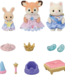 Een speelset voor een kinderkamer met drie baby's en schattige accessoires. Elke baby draagt een speciaal kostuum voor het spel - de Hert-baby speelt de prinses, de Zijde Kat-baby speelt de prins en de Melk Konijn-baby die wordt vastgehouden speelt de heks. Wordt geleverd met schattige accessoires, waaronder glazen muiltjes en een toverstok.