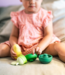Speciaal ontworpen om baby’s te begeleiden tijdens hun eerste maanden van zintuiglijke ontdekkingen, Little L bijtringen en speeltjes van food-grade siliconen zijn zacht, flexibel en veilig. Hun eenvoudige lijnen maken ze tot multifunctioneel speelgoed en nodigen uit tot vrij spel: constructies, symbolische spellen, binnen of buiten, in bad, maken ruimte voor de creativiteit en fantasie van de kleintjes! Ze zijn gemakkelijk af te wassen in heet water of in de vaatwasser voor uren speelplezier! Kinderen kunnen de verschillende stukken op elkaar stapelen om een peer te vormen, deze gebruiken als vrucht tijdens symbolisch spel, in bad of op vele andere manieren. 10 maanden +
