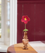Winterviooltje van vilt in bordeaux en burgundy met een groene steel. Een sfeervolle bloem voor in een vaasje of ter vervanging van droogbloemen.