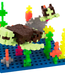 Gebruik de blauwe plaat als oceaan, rivier of lucht, en de grijze als stoere ondergrond voor gebouwen, wegen of machines.