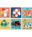 Een educatieve houten spel om peuters bewust te maken van vormen en kleuren, vanaf 2 jaar. Het kind kiest een plank met 2, 3 of 4 gaten. Kinderen vinden het leuk om de fiche in het juiste gat te stoppen, dat overeenstemt met de gekleurde zone om de afbeelding te vervolledigen.