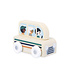 Beste passagiers, welkom in de bus die u naar het treinstation brengt! Deze bus levert materiaal voor een ongelooflijk aantal verhalen. Dankzij de vorm is de bus gemakkelijk te besturen voor kleine kinderen. Speelgoed van FSCTM-gecertificeerd hout voor kinderen van 12 maanden en ouder. Samen met je speelmat en de mooie dobbelsteenkoffer uit de Janod-serie vormt dit rollende voertuig de perfecte aanvulling op je wereld.