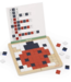 Stukje bij beetje verschijnen er vormen! Met dit educatieve spel worden kinderen vanaf 5 jaar experts in coderen en symmetrie. Het bestaat uit een houten bord van 17,6 x 17,6 cm, 200 houten lopers, 10 modelkaarten en een opbergtas. Dit educatieve spel biedt 4 verschillende speelwijzen. Superpositie: kinderen plaatsen een modelkaart op het bord en leggen de lopers erop; Reproductie: kinderen plaatsen de modelkaart in de inkeping op het bord, met hun gezicht naar hen toe, en plaatsen de elementen op het bord; Symmetrie: kinderen plaatsen een halve kaart op het bord en reproduceren het patroon door symmetrie op de andere helft; Codering: kinderen volgen de cijfers en kleuren die op de kaart staan aangegeven om de illustratie op het bord te reproduceren en te ontdekken. Dit symmetrie- en codeerspel is geschikt voor alle niveaus en helpt bij het ontwikkelen van concentratie, observatievaardigheden, logica en herkenning van getallen en kleuren. Dit educatieve houten spel kan worden gespeeld met jonge kinderen, in groepen, zelfstandig of onder begeleiding van een volwassene. De stukjes maken het makkelijk om pixelachtige figuren te maken, perfect voor kleuters!