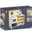 Met al hun keukengerei bereiden de kinderen de ingrediënten, laten ze sudderen en kruiden ze naar eigen smaak, allemaal in hun eigen keuken. Maar dat is nog niet alles! Het fornuis is ook uitgerust met 2 ovens met magnetische deuren (perfect om vlees te grillen en tegelijkertijd een lekkere taart te bakken), een gootsteen met draaiknoppen voor de kraan, bakplaten met draaiknoppen voor het geluid, twee handdoekenrekken en een raam. Perfect om groenten af te spoelen of af te wassen met een mooi uitzicht! De rijkdom aan details en het grote formaat van deze houten keuken zijn een echte blikvanger! Een ander hoogtepunt zijn de innovatieve scharnieren van de oven, die breukvast zijn en ontworpen voor eenvoudige montage. Je hoeft alleen nog maar de keuken in om een heerlijke aardappelgratin of appeltaart te bakken!