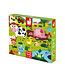 SluitenReuzenpuzzel van 20 stukjes van stevig karton, met 7 beklede stukjes (vacht van koe, schaap, nepstaart van konijn, varken, eend, hanenkam, kikker). Afbeelding in levendige kleuren met de boerderij als thema. Poster meegeleverd. Lees meer..