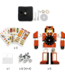 Een creatieve set met een klok om te decoreren en in elkaar te zetten en te versieren met meer dan 80 transferstickers en accessoires. Met een potlood wrijft het kind over de transferstickers om ze op de 5 stevige kartonnen onderdelen aan te brengen die in een latere stap zullen worden samengevoegd tot de klok. Vervolgens schroeft het kind de bouten vast om de robot in elkaar te zetten. Nu hoeven ze alleen nog maar het mechanisme in elkaar te zetten. Een mooi decoratief voorwerp dat de tijd aangeeft.