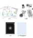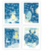 Deze wonderbaarlijke activiteit is geïnspireerd op een fotografisch proces: blauwdruk. Met behulp van ondoorzichtige motieven maakt het kind decors op lichtgevoelig papier. Als het papier blootgesteld wordt aan de zon, verschijnen de motieven in negatief. Het papier hoeft dan alleen nog maar gespoeld te worden in een bad met helder water en het decor wordt onthuld op een blauwe achtergrond! Deze creaties worden de nachtelijke achtergronden van de illustraties van de 4 poëtische schilderijtjes.