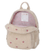 Doe je favoriete spullen voor school of een familiebezoek in dit schattige zachte tasje, en ga op pad. De rugzak gaat heel wat avonturen mee en zal zeker deel uit gaan maken van fijne jeugdherinneringen. De schouderbanden zijn verstelbaar en kunnen worden ondersteund door de borstband vast te maken. Aan de binnenkant zitten twee elastische banden om drinkbekers rechtop te houden zodat ze niet lekken. Er is ook een speciaal vak om de kunstwerken van je kindje te beschermen en een label om de rugzak van zijn / haar naam en adres te voorzien.