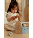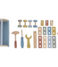 De gereedschapskist bevat onder andere een hamer, schroevendraaier en moersleutel, allemaal gemaakt van stevig en duurzaam hout dat veilig is voor kleine handjes. Dankzij het compacte formaat kan de kist gemakkelijk meegenomen worden, zodat je kindje overal kan spelen en klussen. Alles kan na gebruik netjes worden opgeborgen in de kist, waardoor het altijd overzichtelijk blijft.