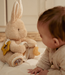 De speelse structuren en rustige pastelkleuren maken deze knuffel niet alleen aantrekkelijk voor je baby, maar ook een mooie aanvulling op de babykamer. Of je hem nu in de box gebruikt, meeneemt in de kinderwagen of cadeau geeft bij een geboorte: Bunny biedt geborgenheid, uitdaging en plezier vanaf de eerste dag.