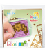 Met deze startset ontwerp je een pixelafbeelding in een transparant medaillon. Door de pixelsteentjes volgens een patroon (of je eigen ontwerp) te plaatsen, ontstaat een uniek werkje. Na afloop sluit je het medaillon af en bevestig je het koord, zodat je het direct kunt gebruiken als hanger of sleutelhanger.
