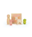 SluitenDeze lente set is het resultaat van twee prachtige bedrijven (Grapat x Ostheimer) die de handen in een slaan en iets fantastisch hebben geproduceerd. Het set bevat een met roze bloemetjes beschilderd poppetje, een lammetje, twee houten tulpjes en 2 houte