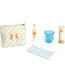 Poets je tanden! Een prachtige toilettas met print van twee kleine konijntje, om de jonge ouders bekend te maken met de dagelijkse hygiëne, waaronder tandenpoetsen. Een volledige toilettas om alle spullen in om te bergen, waaronder een tube tandpasta, een valse elektrische tandenborstel, een glas en een kleine handdoek.