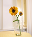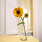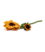 Vilten zonnebloem met een grote bloem en een kleinere knop aan de stengel. De warme kleuren en groene bladeren maken het een zomerse blikvanger. Mooi in een vaas of als onderdeel van een vilten boeket.