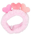 Super zacht en perfect voor de beauty routine: de schattige roze haarband met drie hartjes van pluch..