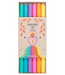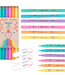 Markeren, gummen en nog een keer highlighten! Geen probleem voor de markeerstiften van PENfection. Elke stift heeft op de ene kant een brede, schuine punt en aan de andere kant een smalle vilstiftpunt. Beiden om uit te gummen (thermosensitieve inkt) met behulp van het witte uiteinde. In de set zitten 6 pastelkleuren: geel, oranje, roze, paars, blauw en groen.