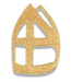 Set van 2 gouden strijklabels Sinterklaas Mijter om op jouw sinterklaas kostuum te strijken, of om er op vast te naaien. Dit borduursel is makkelijk te bevestigen voor een feestelijke look. Het label is circa 10 centimeter lang en 5,5 centimeter breed.