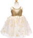 Deze jurk is vervaardigd met nauwgezette aandacht voor detail en combineert de tijdloze elegantie van goud met de grillige allure van sprankelende pailletten en sterren! Met trots gemaakt in Canada sieren de gouden pailletten het lijfje van de jurk, waardoor een oogverblindend effect ontstaat dat het licht vanuit elke hoek opvangt. Terwijl je beweegt, glinsteren en reflecteren de pailletten, waardoor je een vleugje elegantie krijgt voor de feestdagen! Vergeet niet de bijpassende cape toe te voegen!